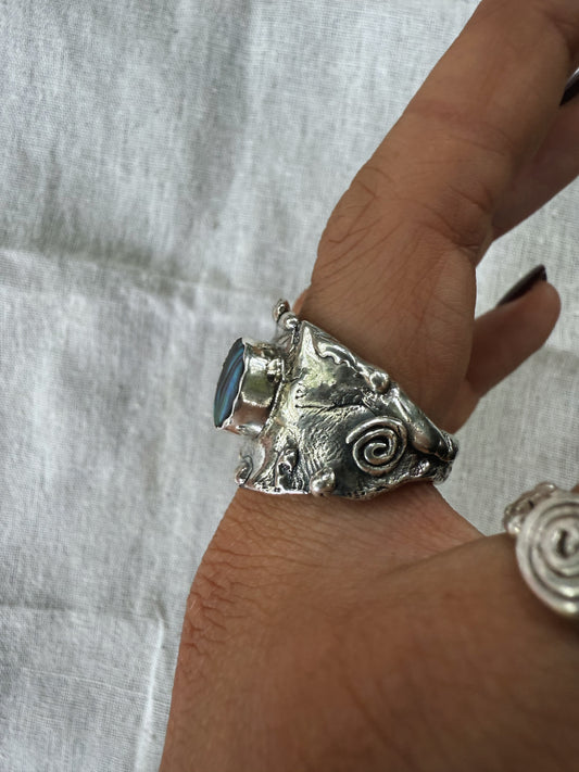 Each piece in this collection is a true one-off there is only one in the world. Completely unique and handcrafted from scratch, every form is shaped slowly and intentionally. Within the silver lives a quiet sentiment, a story pressed into the metal, so that each piece carries its own memory, its own energy, and its own small universe.