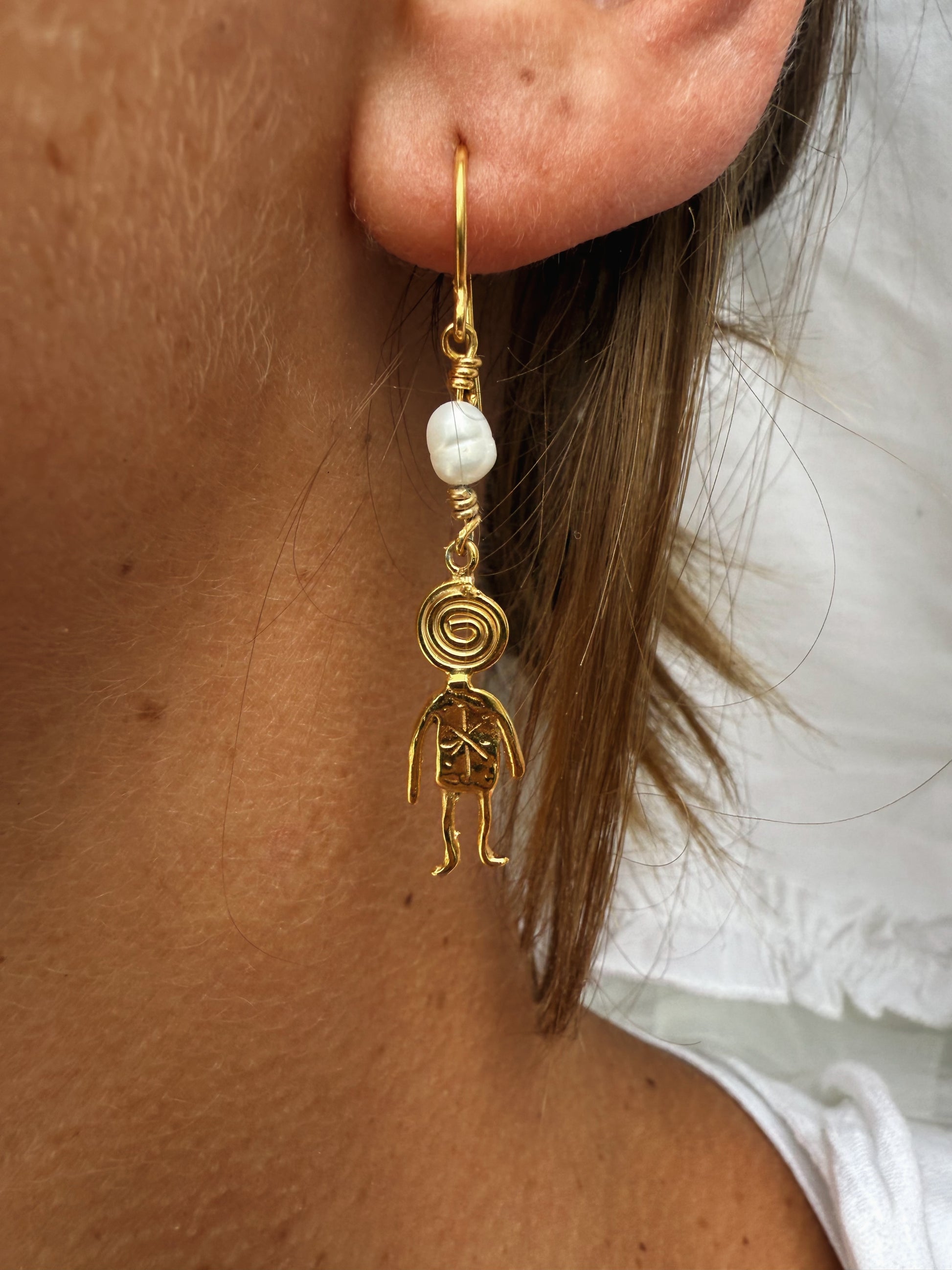Meet the Dizzy Man Pearl Earrings, with a floating pearl above him, like a tiny swirl of cosmic energy caught in the stars. These earrings are storytellers, reminding us that we’re all woven from stardust and magic.