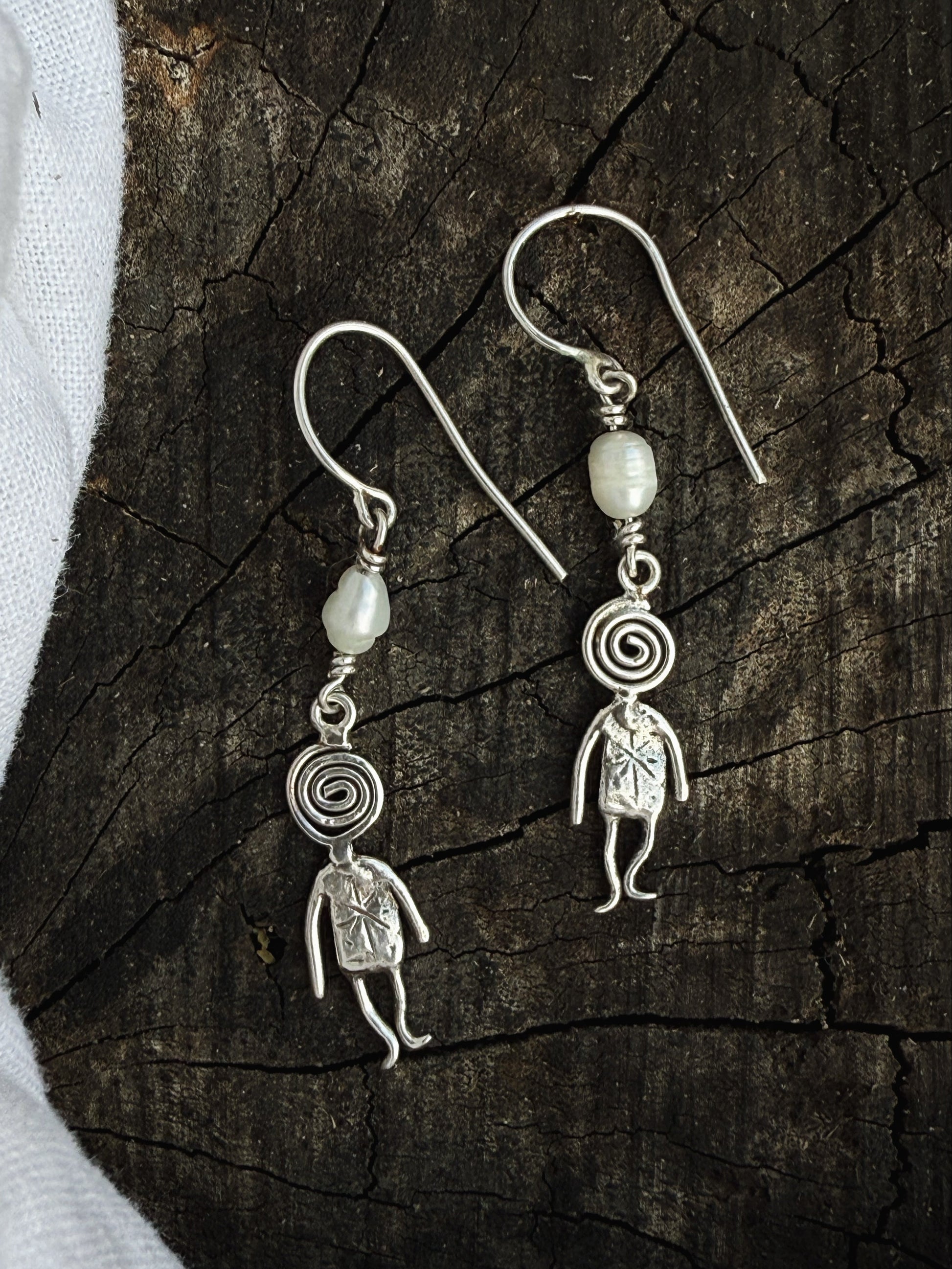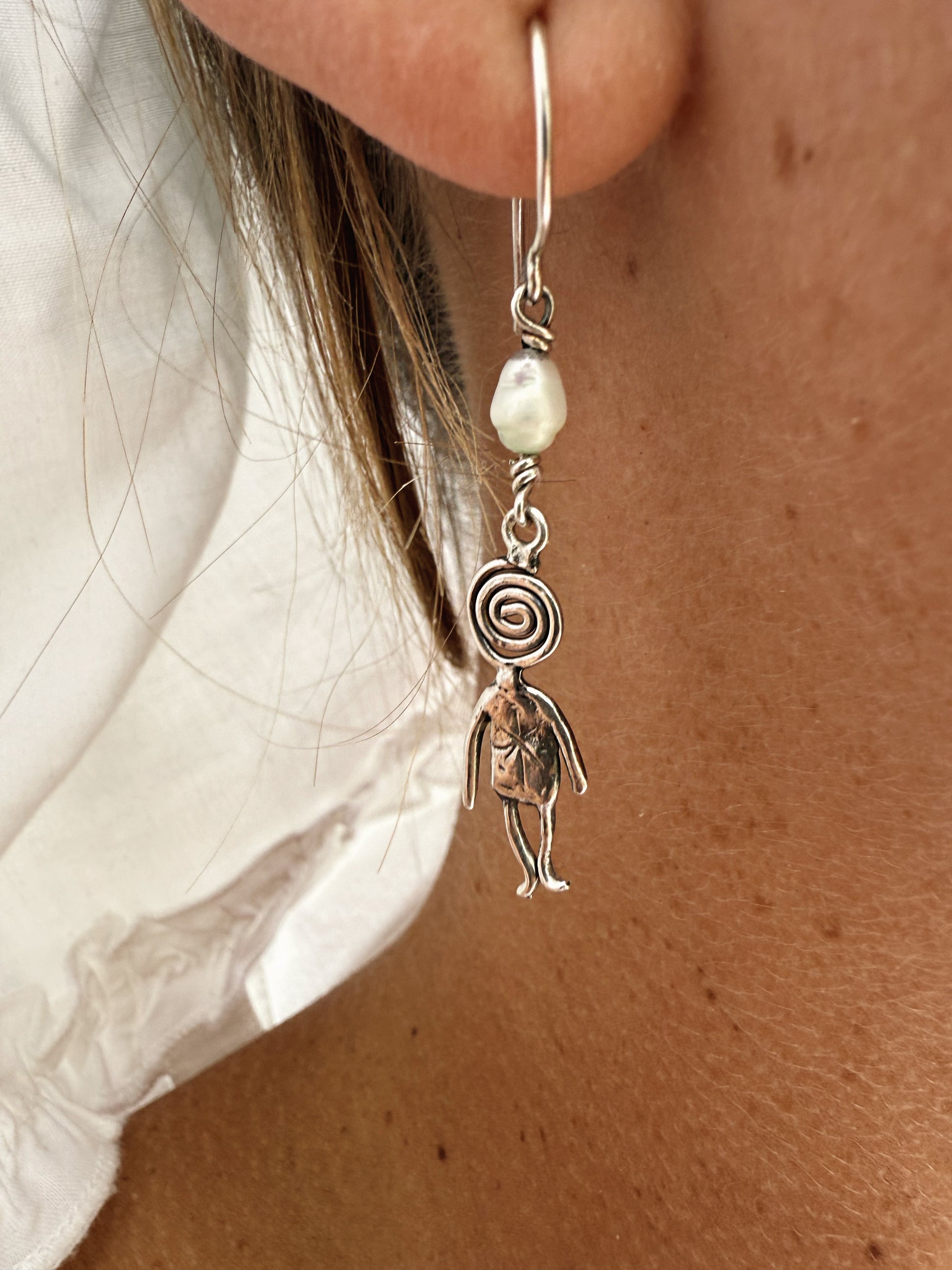 Meet the Dizzy Man Pearl Earrings, with a floating pearl above him, like a tiny swirl of cosmic energy caught in the stars. These earrings are storytellers, reminding us that we’re all woven from stardust and magic.