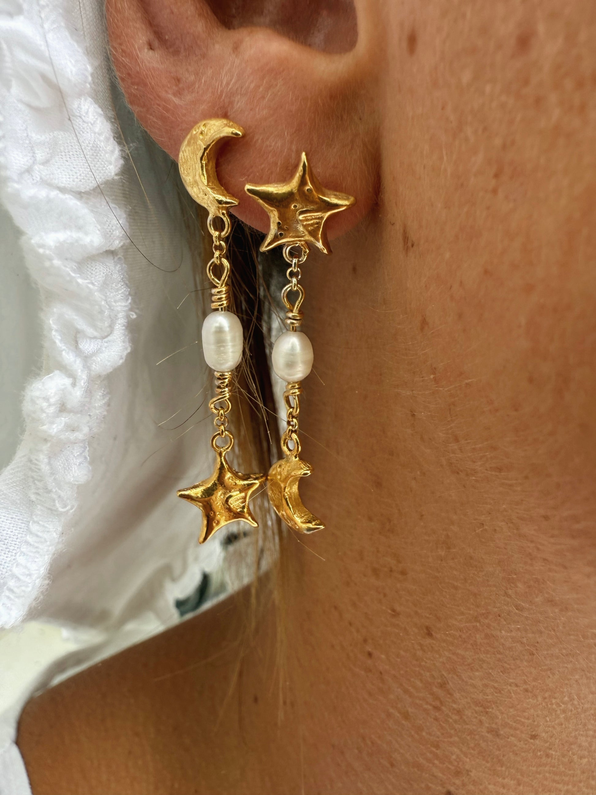 Light, whimsical, and magical, these earrings are designed to be versatile and lightweight. Wear them as a solo statement or layer with your favourite studs and hoops for a dreamy, cosmic stack.