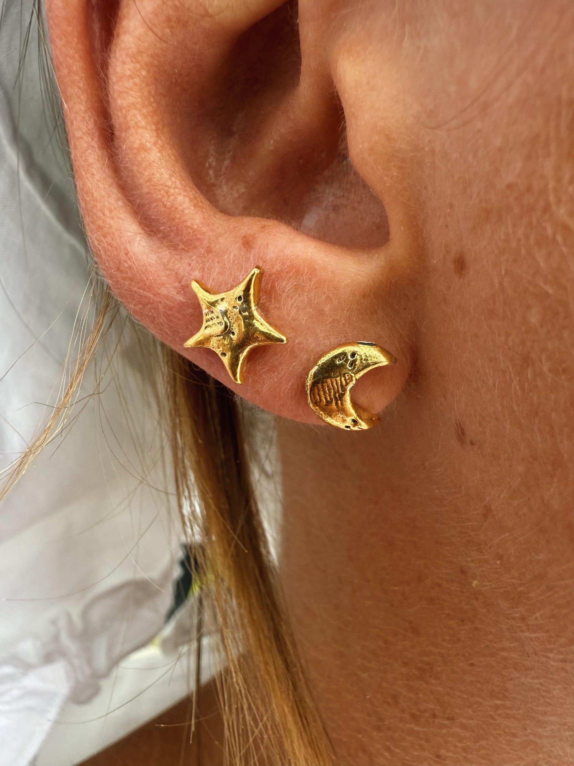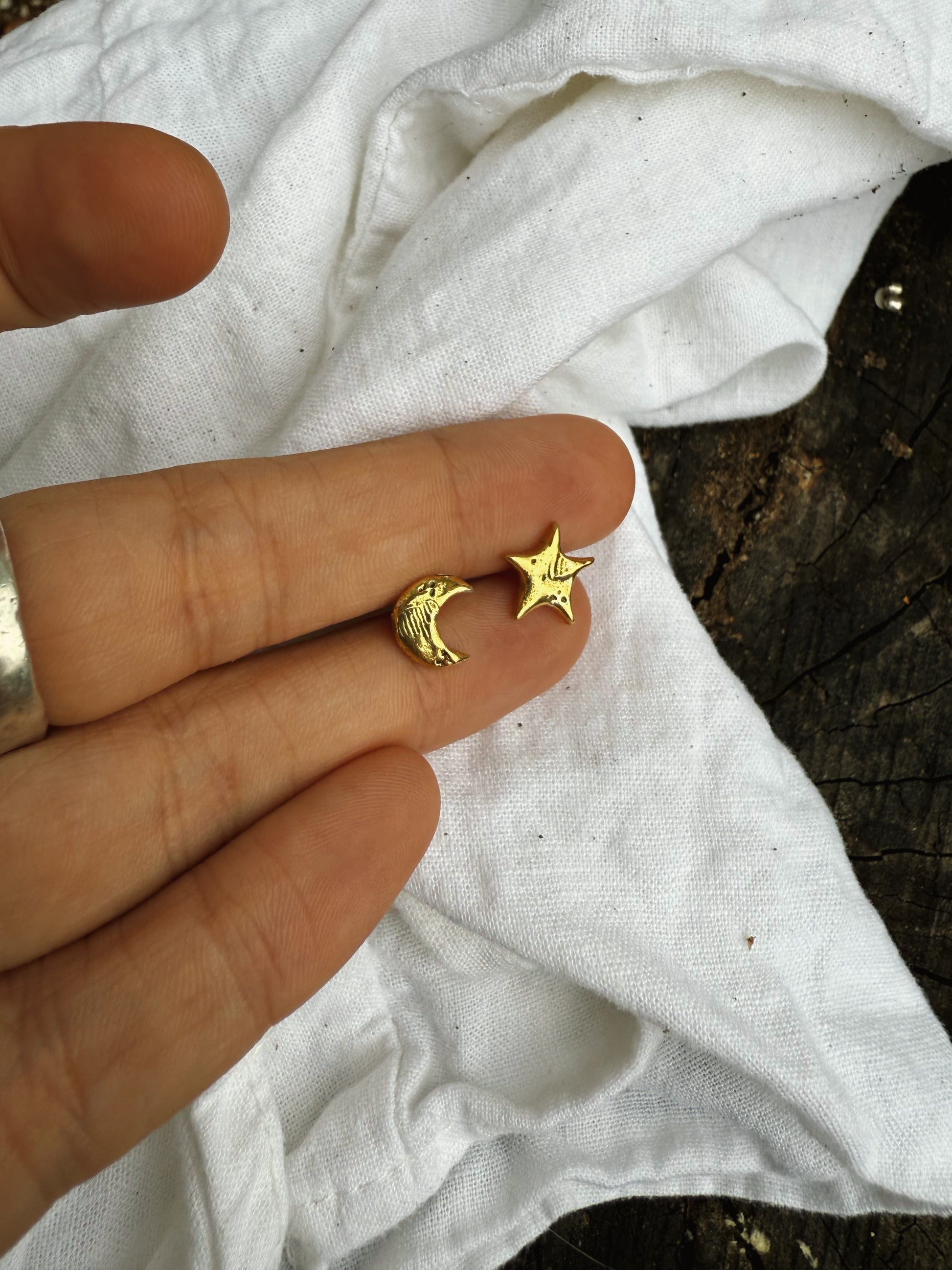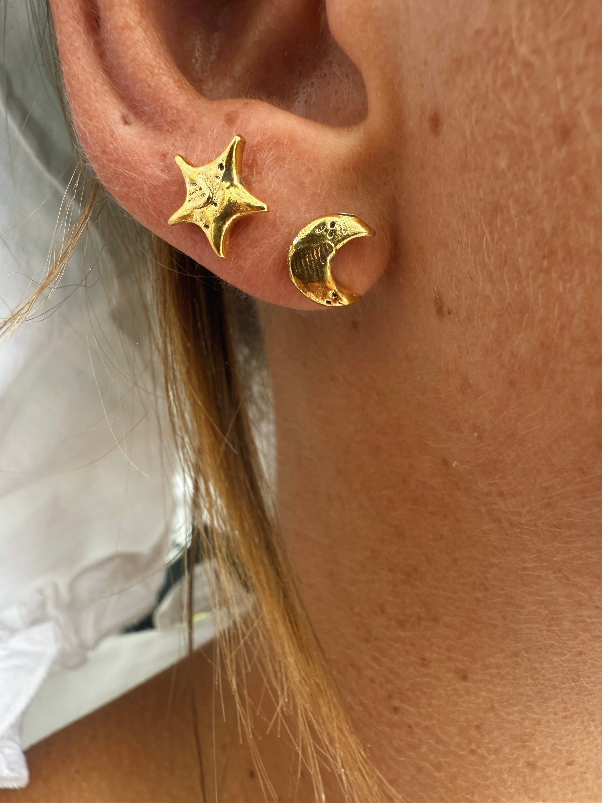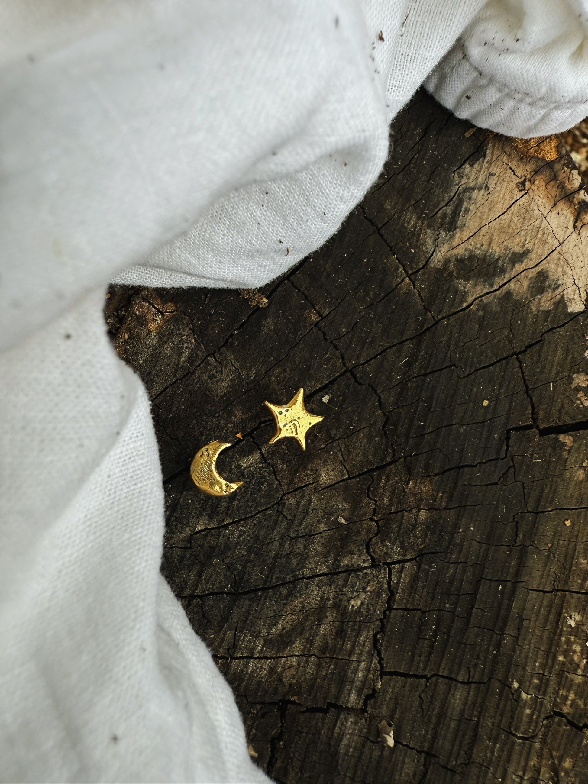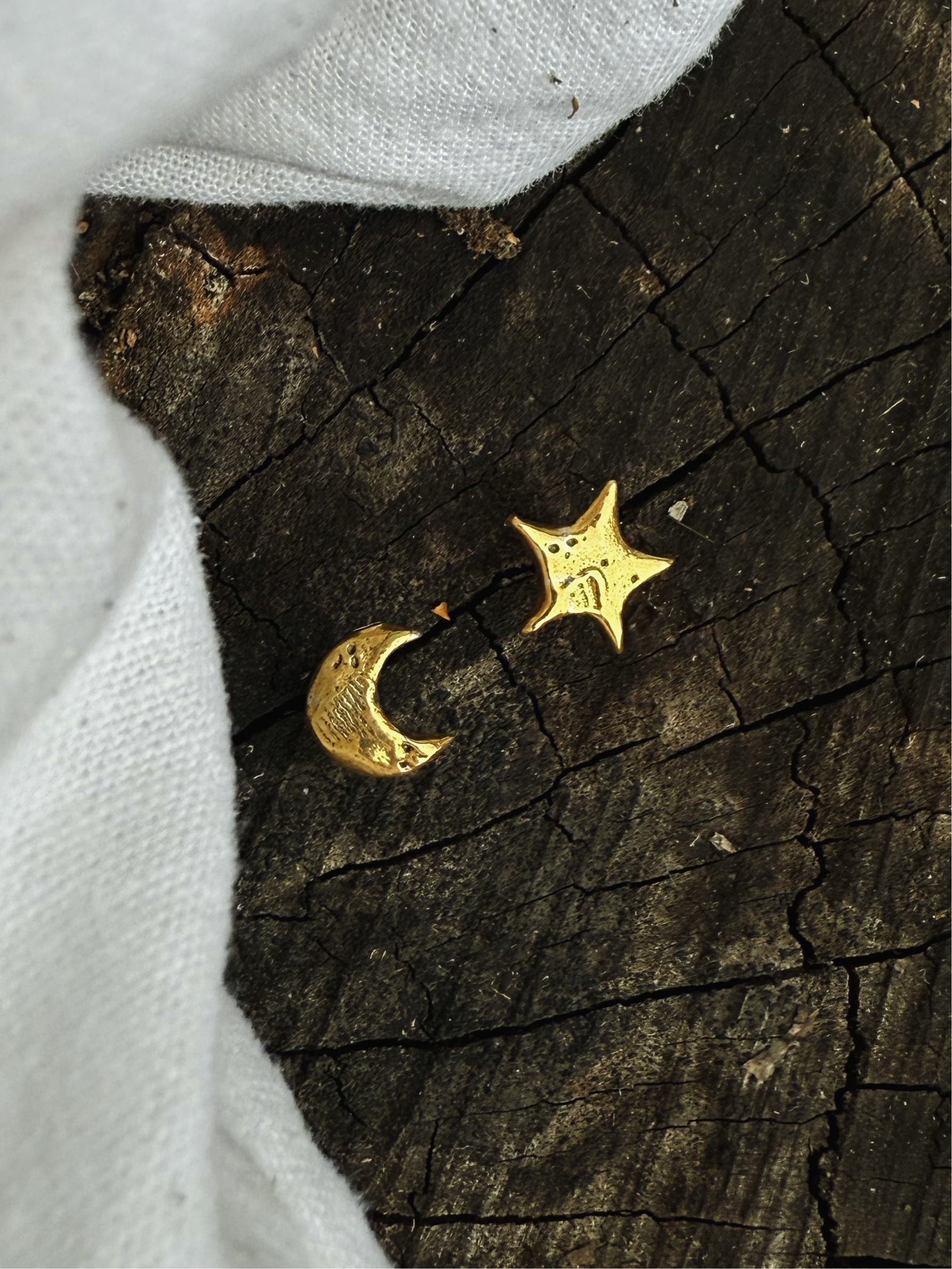 A delicate pair featuring one moon and one star, these dainty studs bring a touch of cosmic charm to your everyday look.