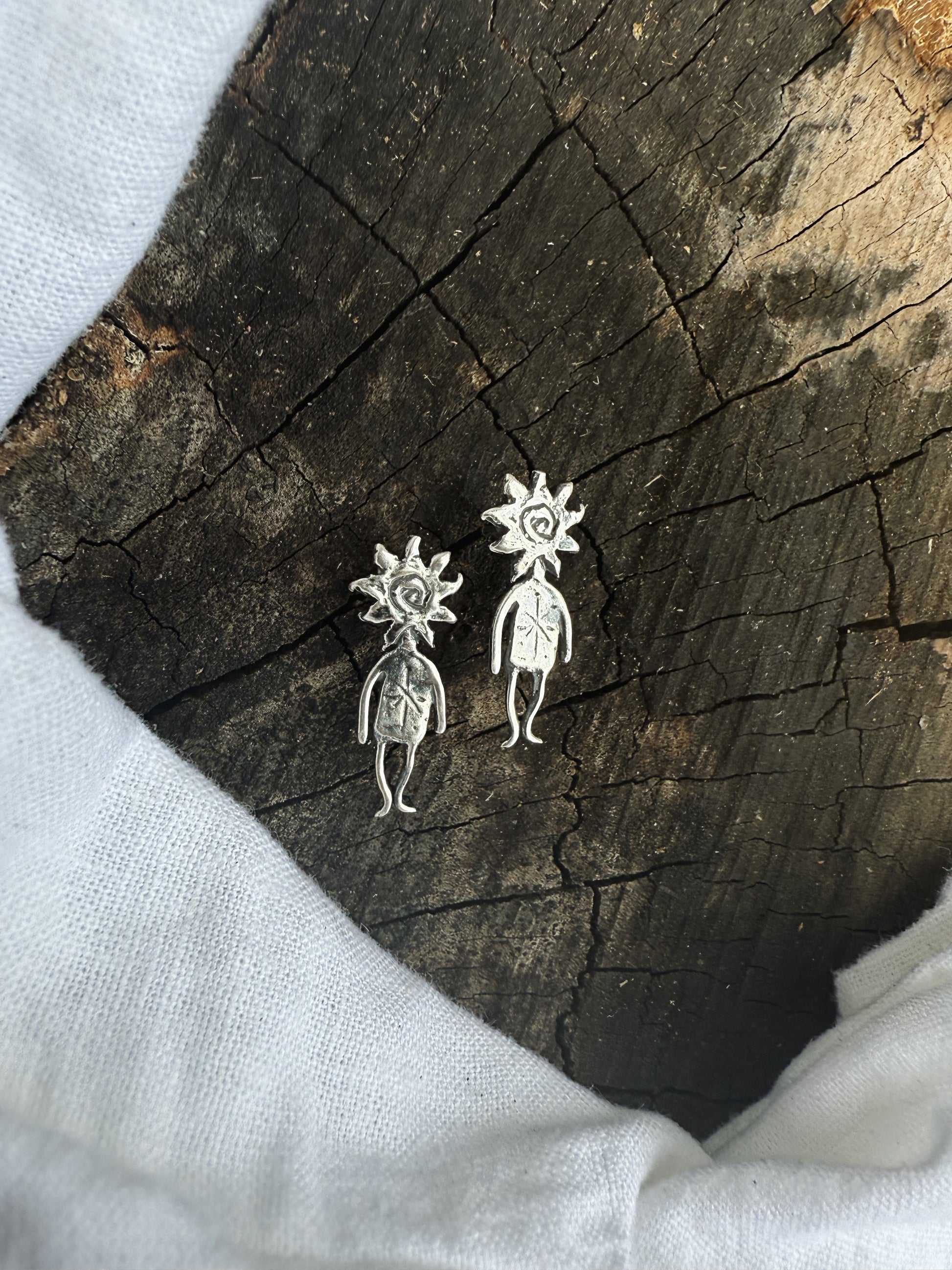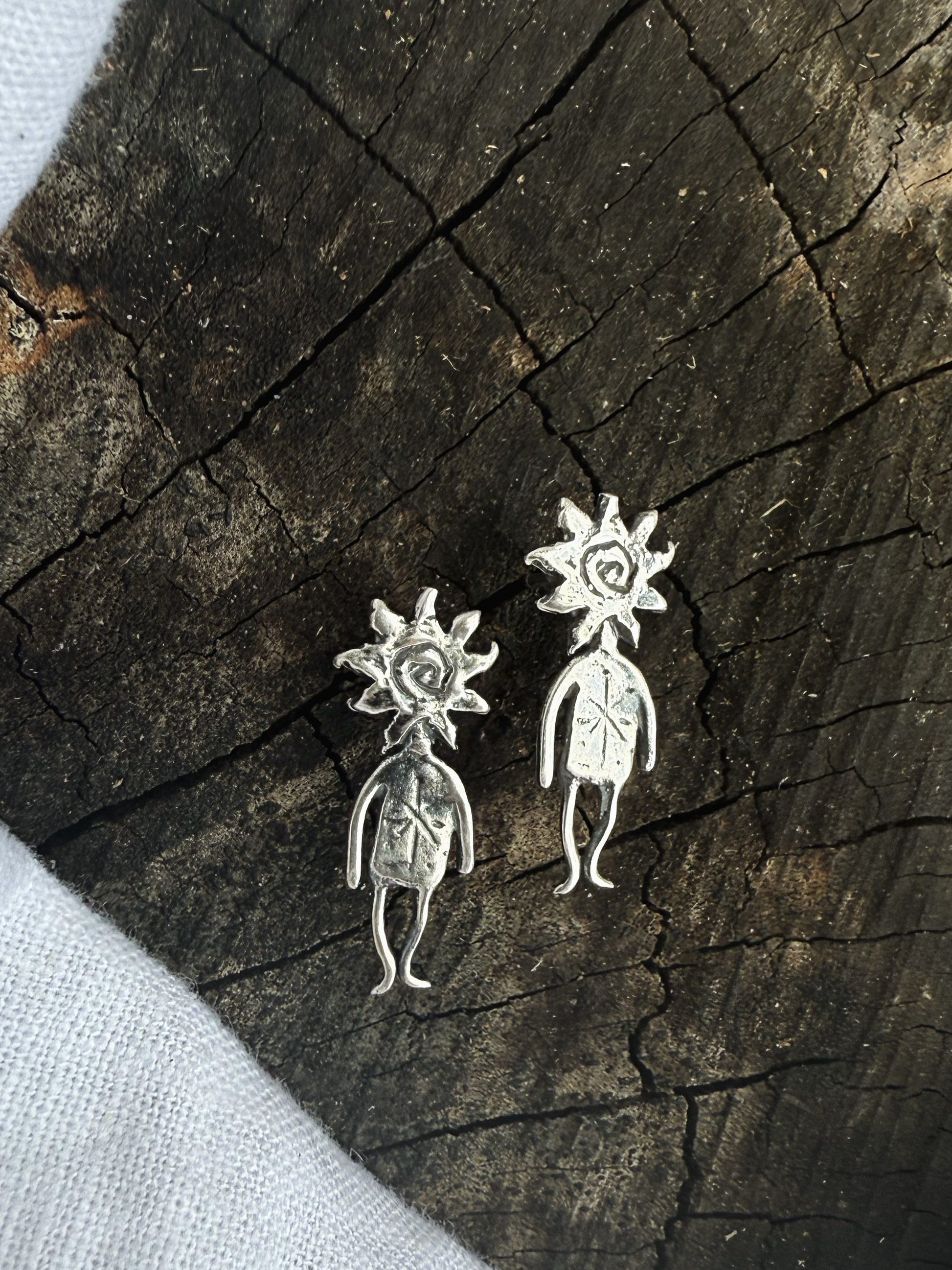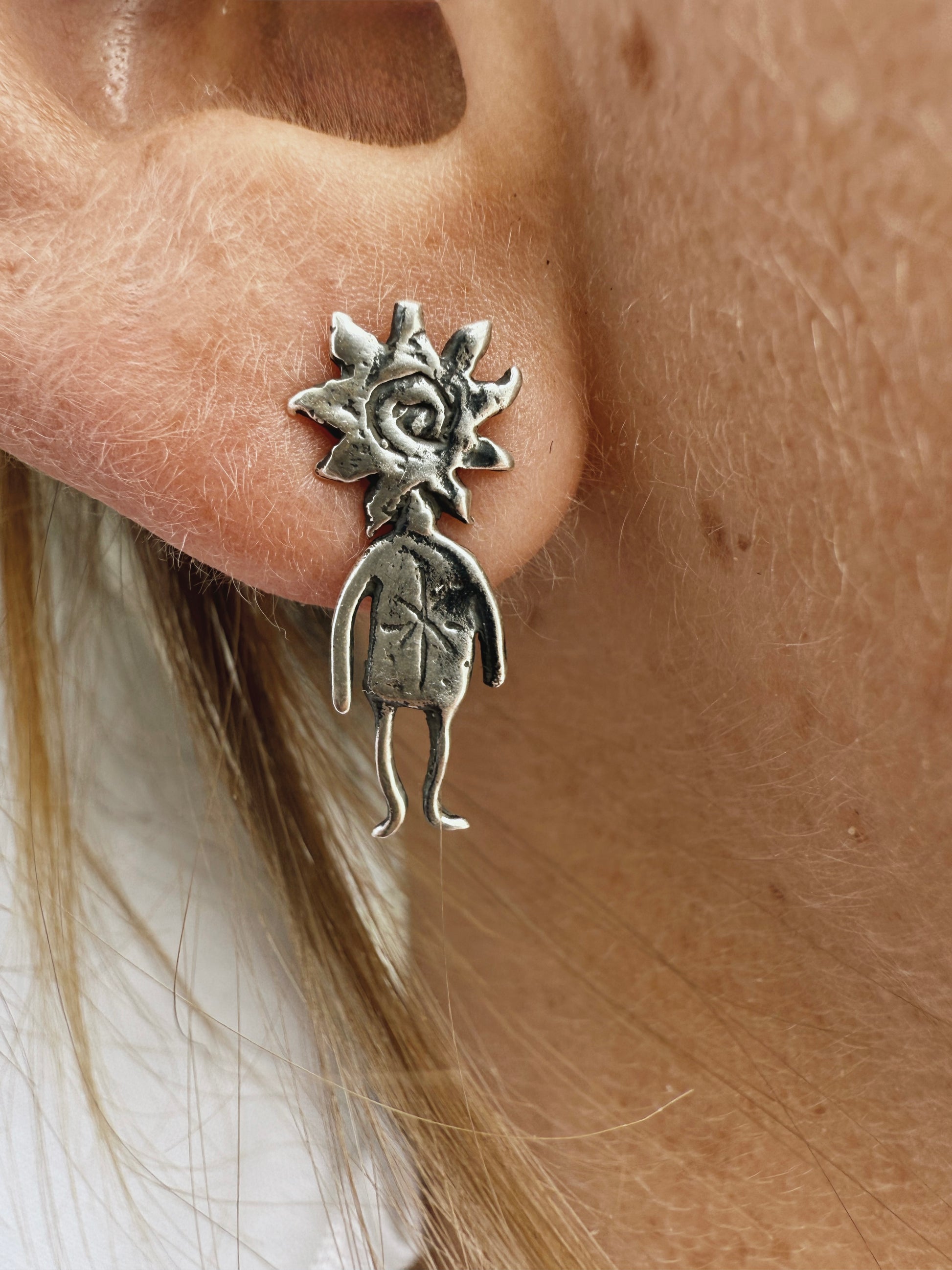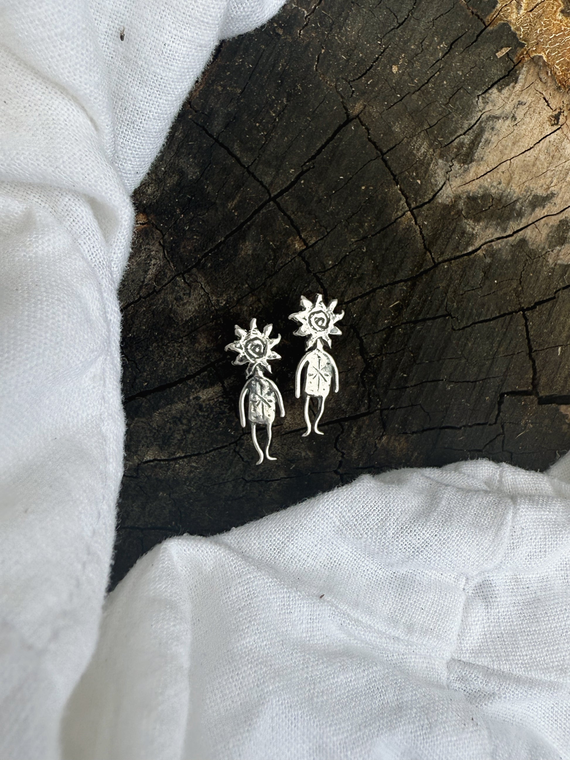 With a glowing sun for a head, he’s a symbol of vitality, creativity, and cosmic joy, a tiny reminder to keep your inner fire burning bright. Handcrafted in solid sterling silver, the Sun Man Studs capture the spirit of golden days and radiant souls.