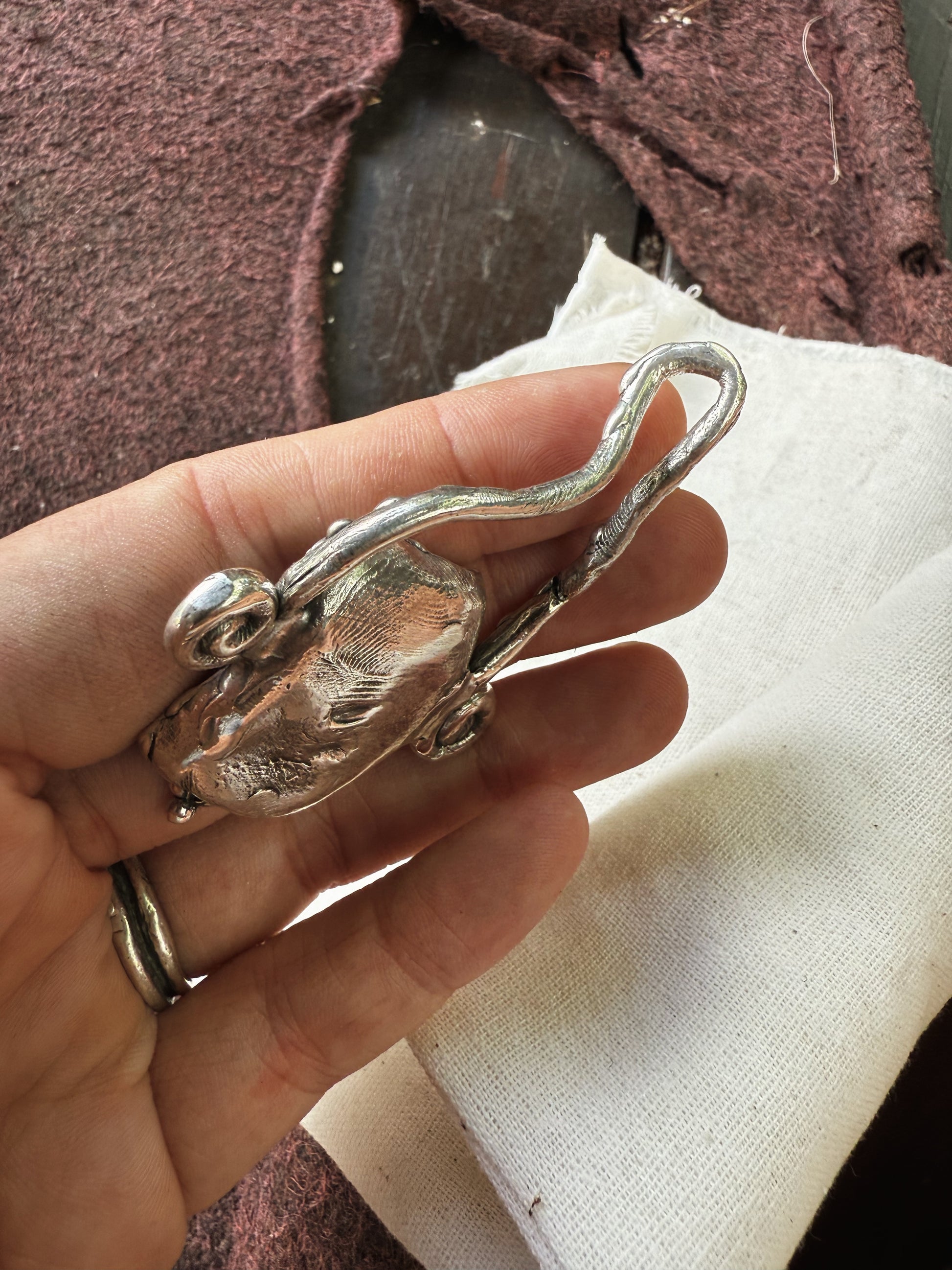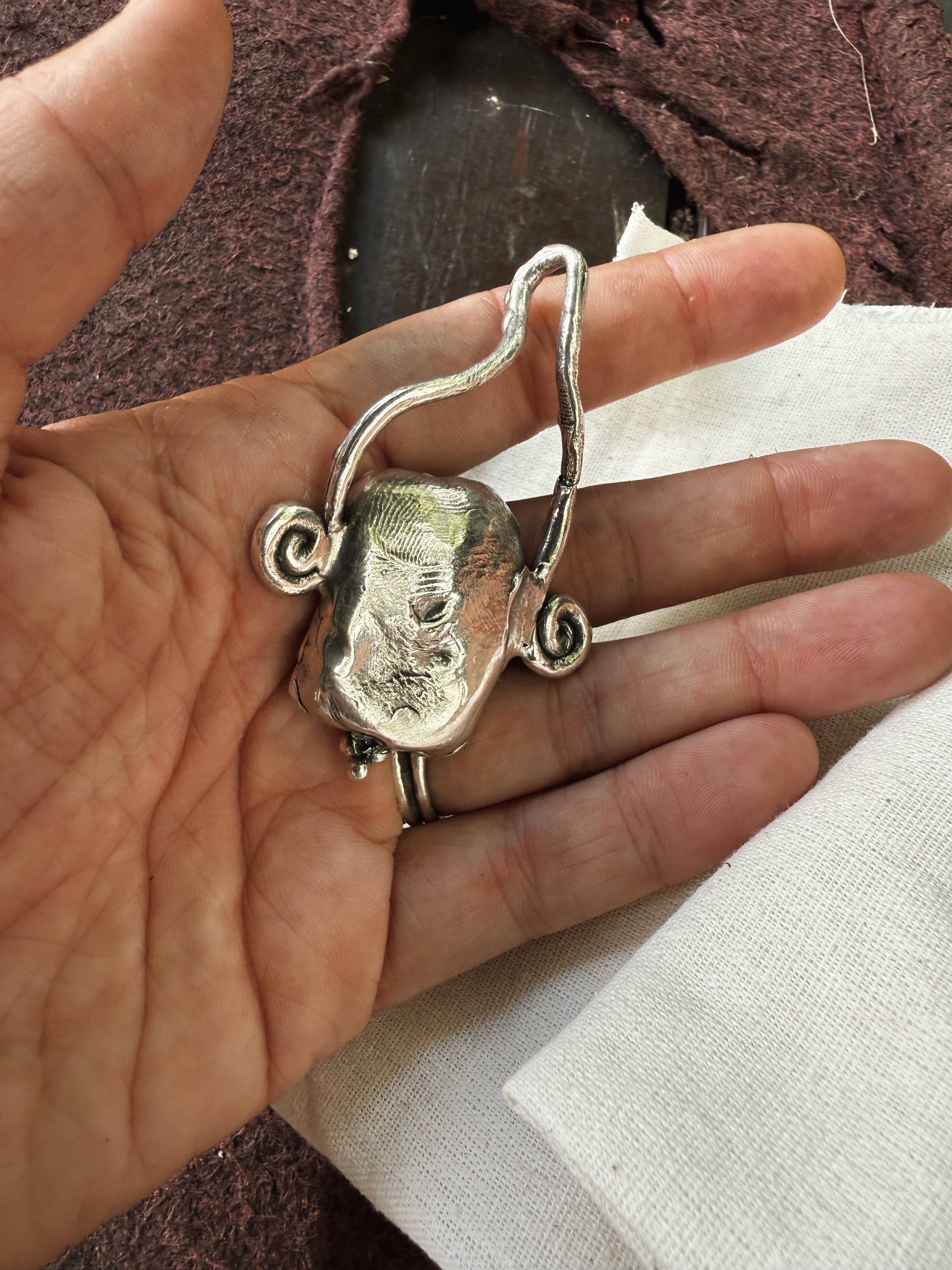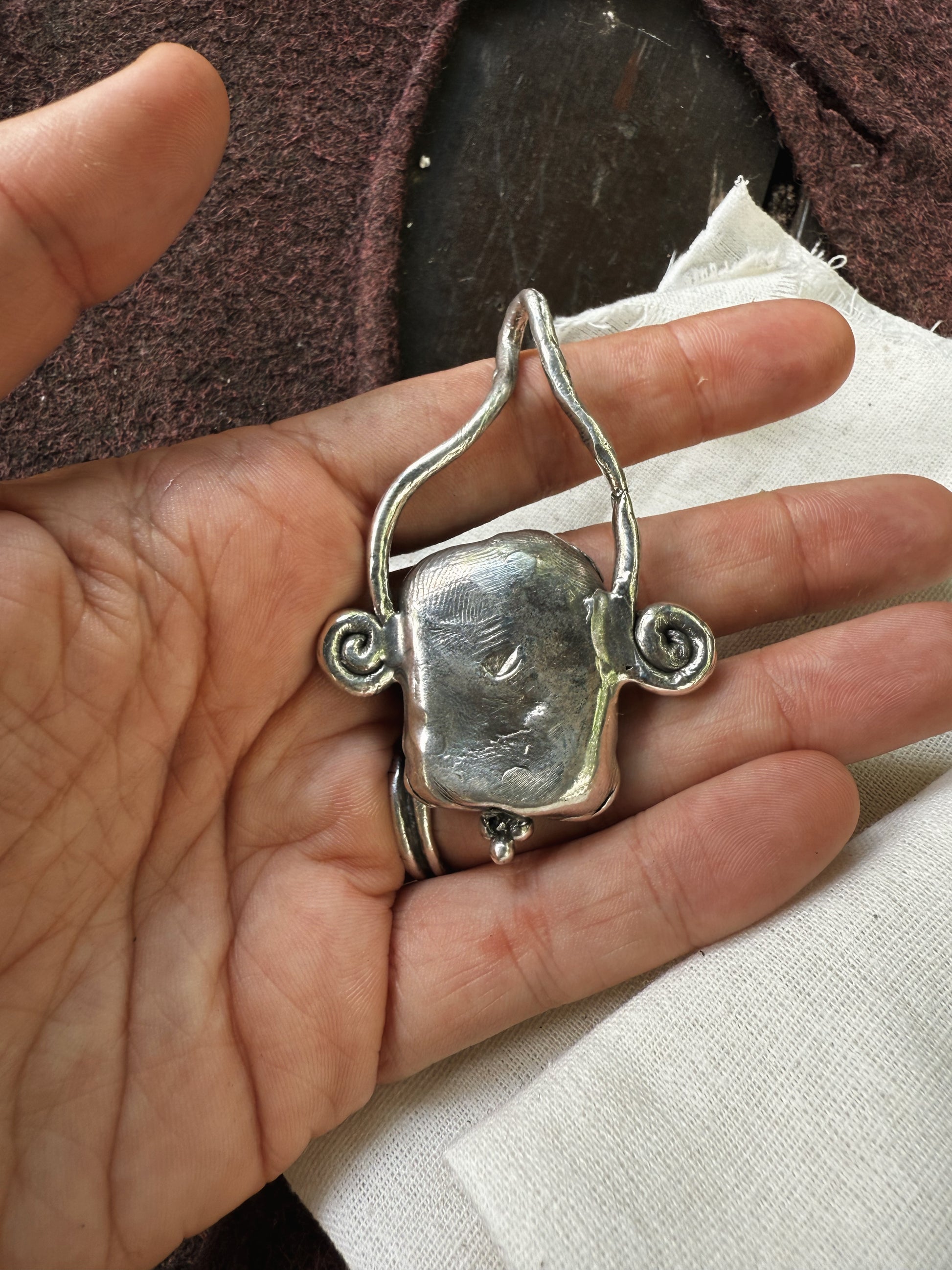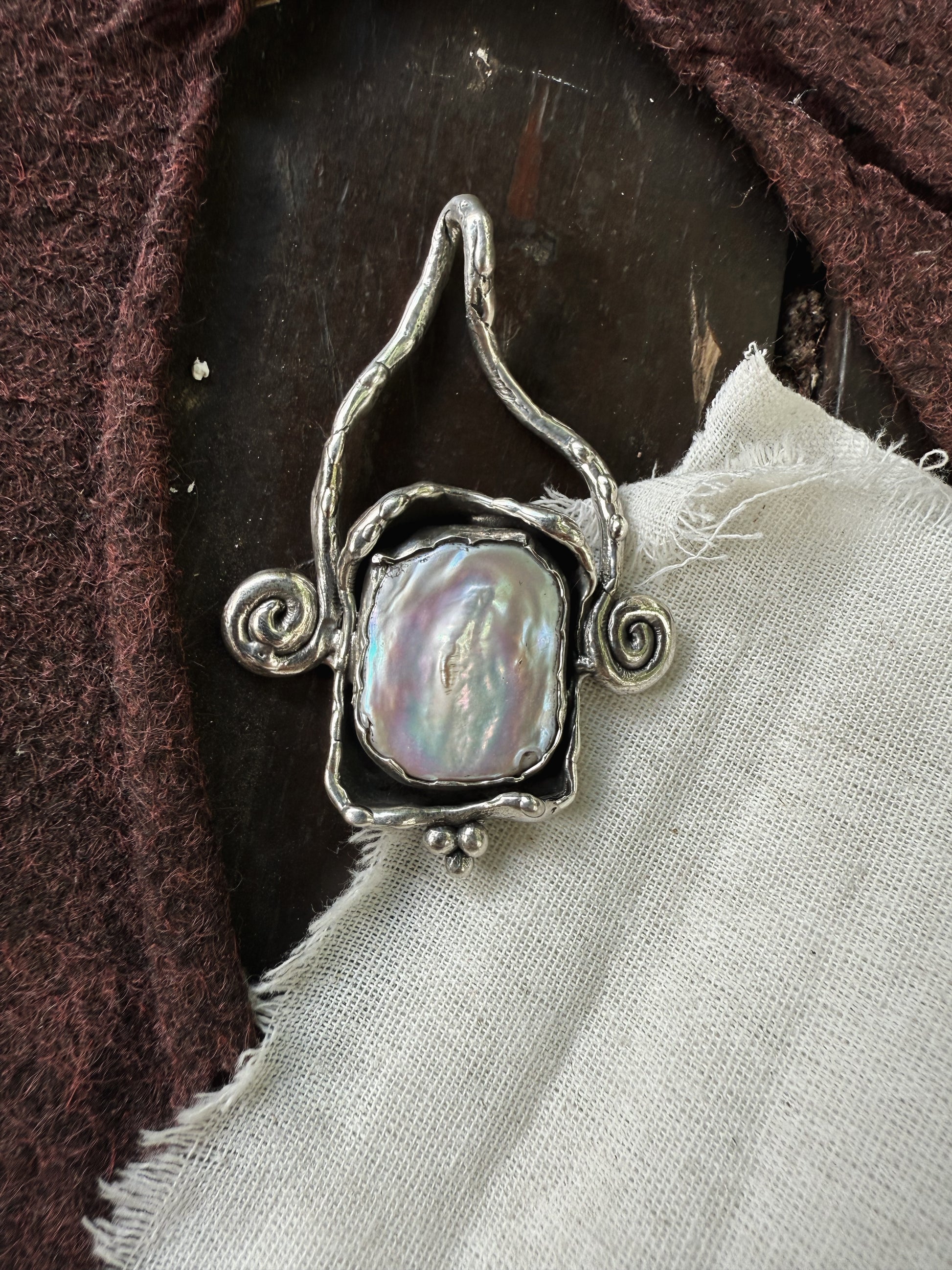 This ethereal, chunky yet elegant pearl necklace has my heart, a tribute to the purity we carry within and the quiet innocence that lives in us all, rooted deeply in love. Handcrafted from solid sterling silver, a high-quality statement pearl rests beneath sculpted silver with an organic, flowing form. Spirals on either side symbolise growth and continuous becoming, a gentle reminder of life’s unfolding journey and the beauty of evolving into ourselves.
