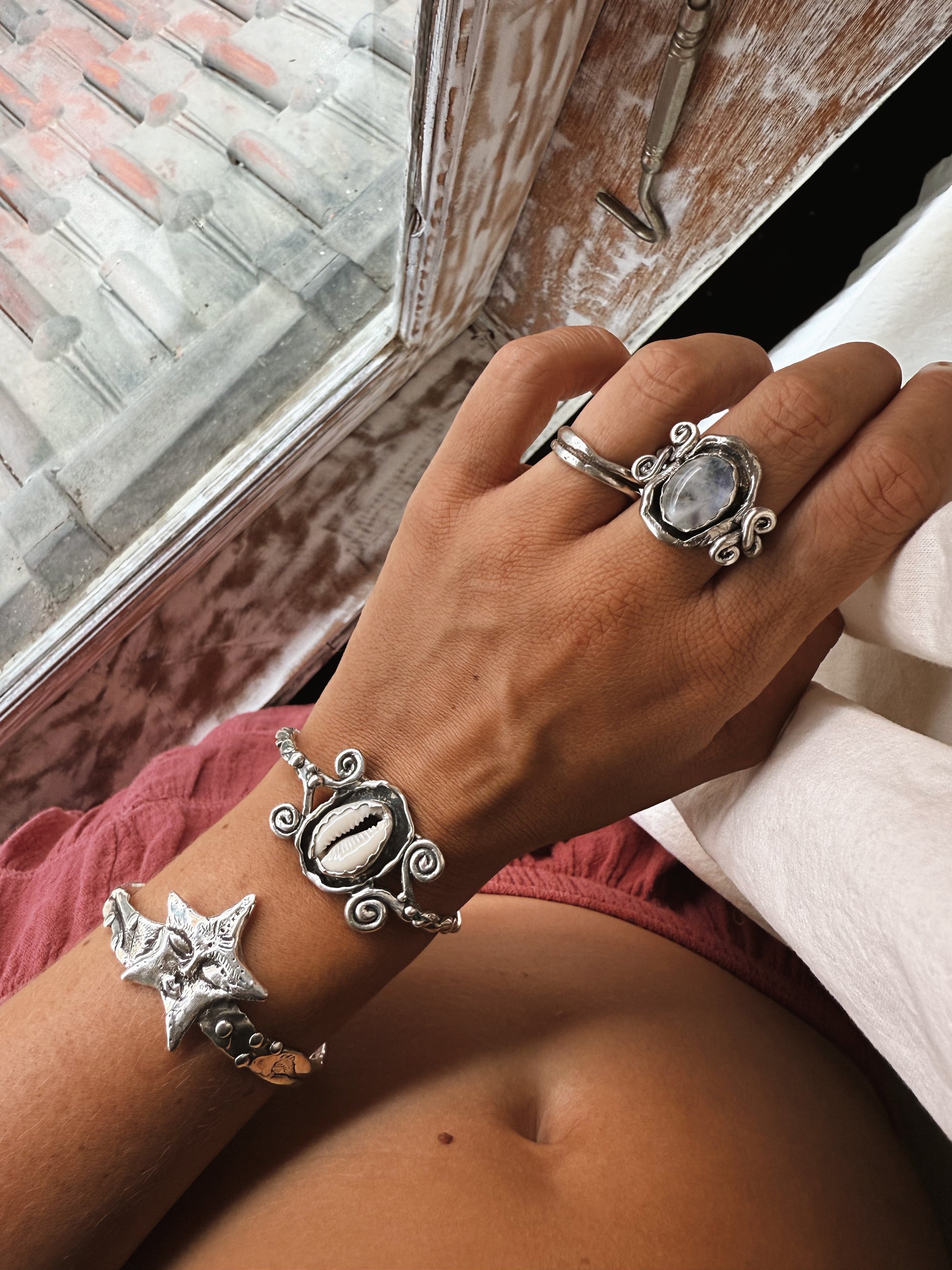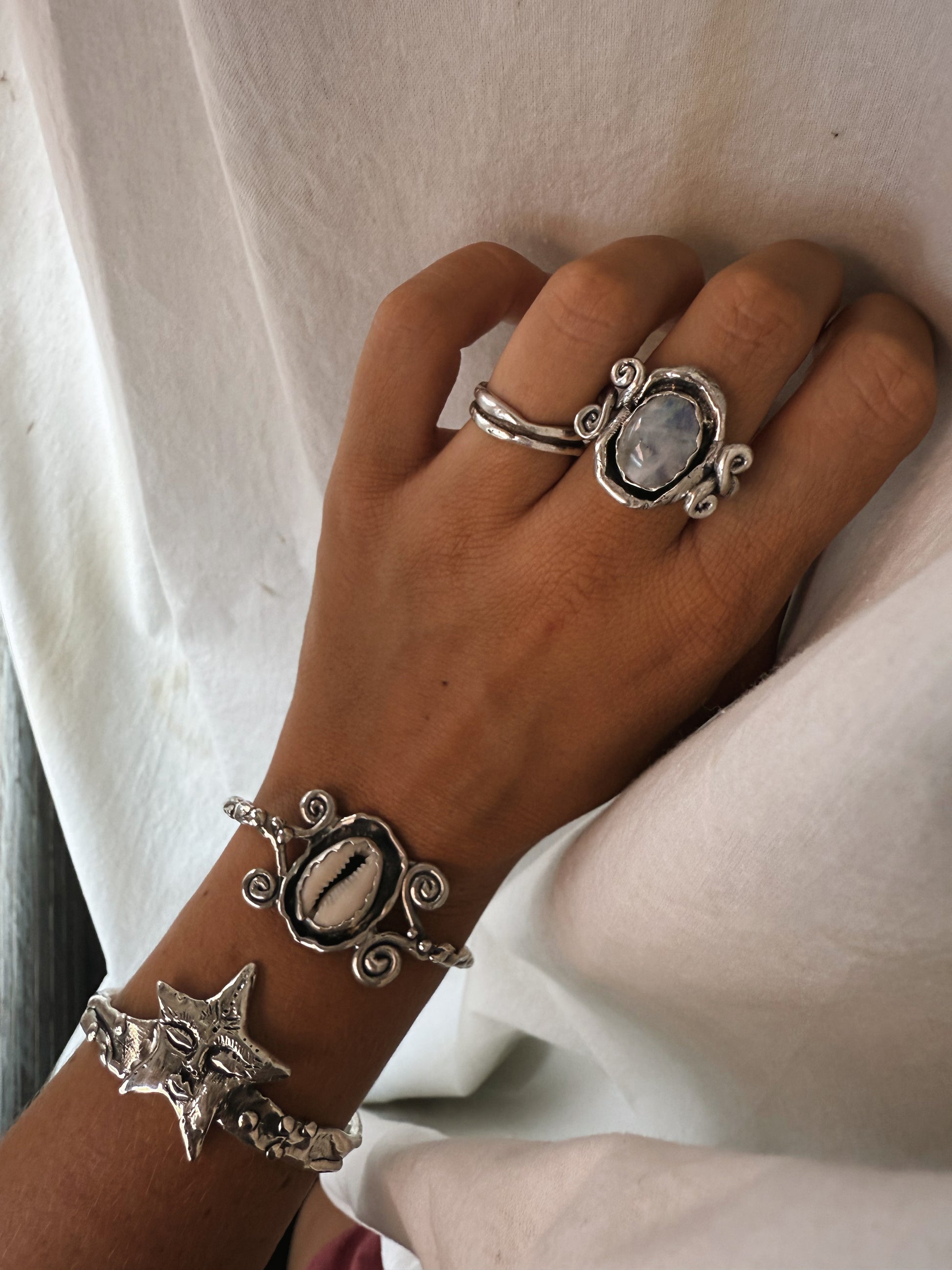 She holds quiet pockets of wisdom in her gaze, watching gently over the one who wears her. Shaped by hand in textured silver, Zori holds a personality of her own, soft yet strong, playful yet ancient. She is a reminder to stay curious, to follow light in dark places, and to trust the magic of your own becoming. Wearing her feels like carrying a small guardian star, hugging against your skin and full of stories still unfolding.